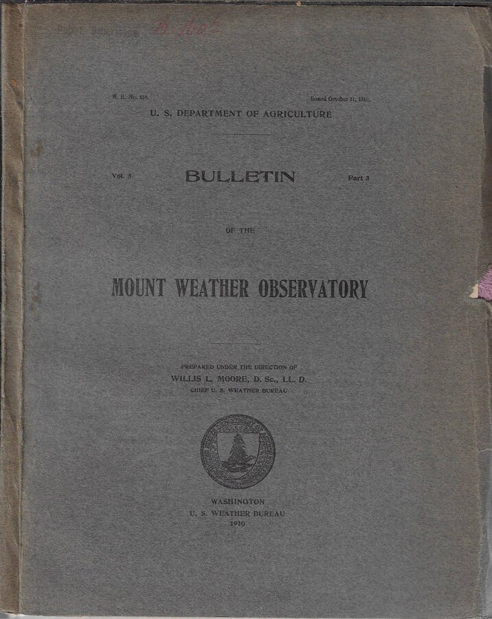Bulletin of the Mount Weather Observatory Vol. 3 part 3 1910