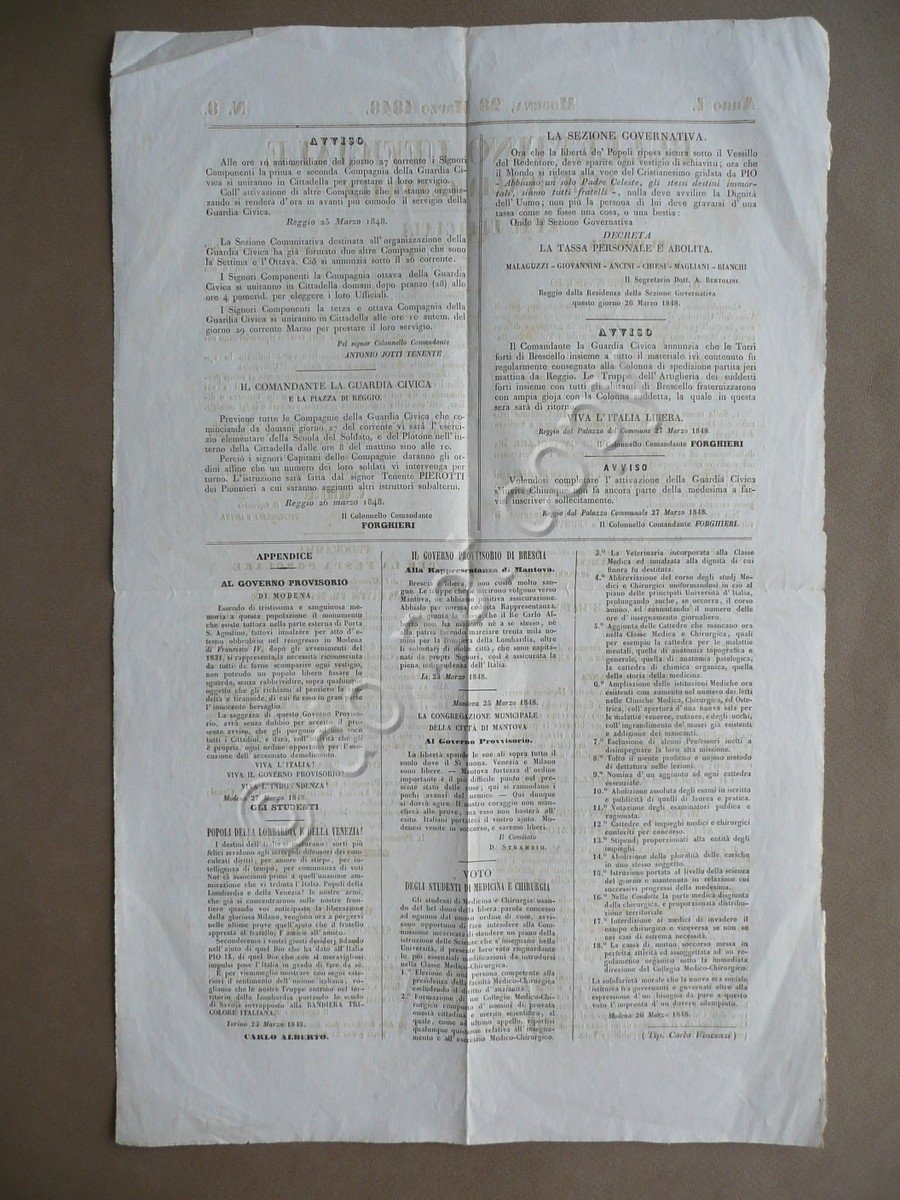 Bullettino Ufficiale dell'Italia Centrale Modena 28/3/1848 Liberazione Brescia | Libri antichi e moderni |