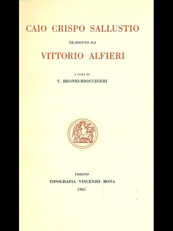 Caio Crispo Sallustio tradotto da Vittorio Alfieri | Libri antichi e moderni | Beonio-Brocchieri, V.