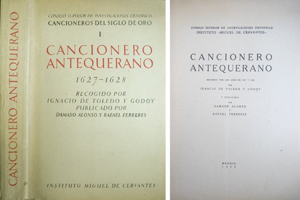 Cancionero Antequerano. Recogido por los años de 1627 y 1628 por Ignacio de Toledo y Godoy. Y publicado por Dámaso Alonso y Rafael Ferreres.
