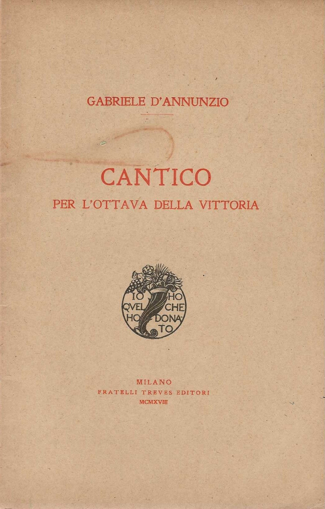 Cantico per l' ottava della vittoria | Libri antichi e moderni | Gabriele D' Annunzio