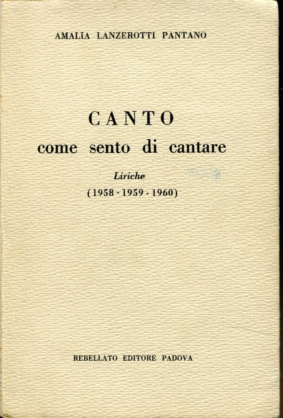 Canto come sento di cantare. Liriche (1958 - 1959 - 1960) | Libri antichi e moderni | Lanzerotti Pantano Amelia, ,Lanzerotti Pantano Amelia
