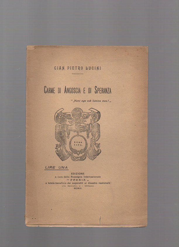 Carme di angoscia e di speranza. [Al frontespizio] In commemorazione del XXVIII Decembre MCMVIII | Libri antichi e moderni | Lucini, Gian Pietro