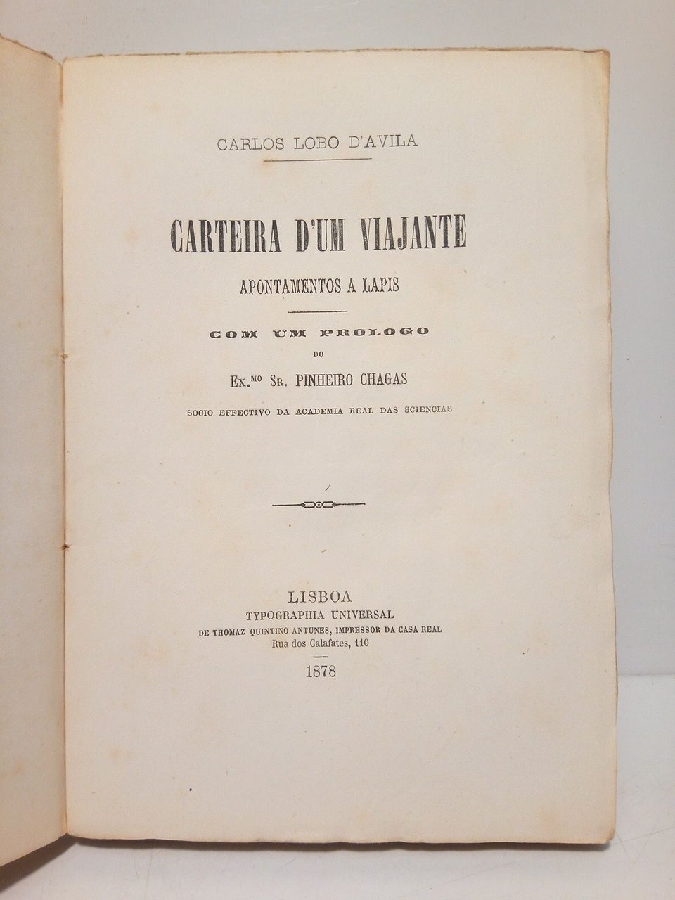 Carteira d'um viajante: Apontamentos a lapis / Con um prologo do Ecmo. Sr. Pinheiro Chagas | Libri antichi e moderni | Lobo D'Avila, Carlos