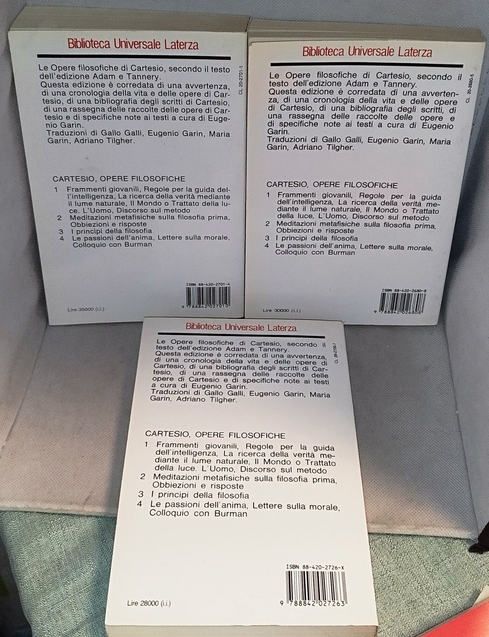 - cartesio opere filosofiche volume 1 -2-4. , biblioteca universale laterza italiano, °°