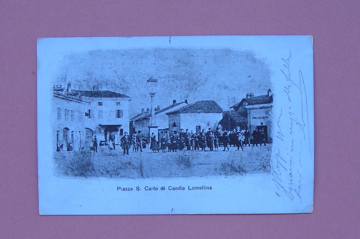 Cartolina Candia Lomellina Piazza San Carlo animata viaggiata | Libri antichi e moderni |