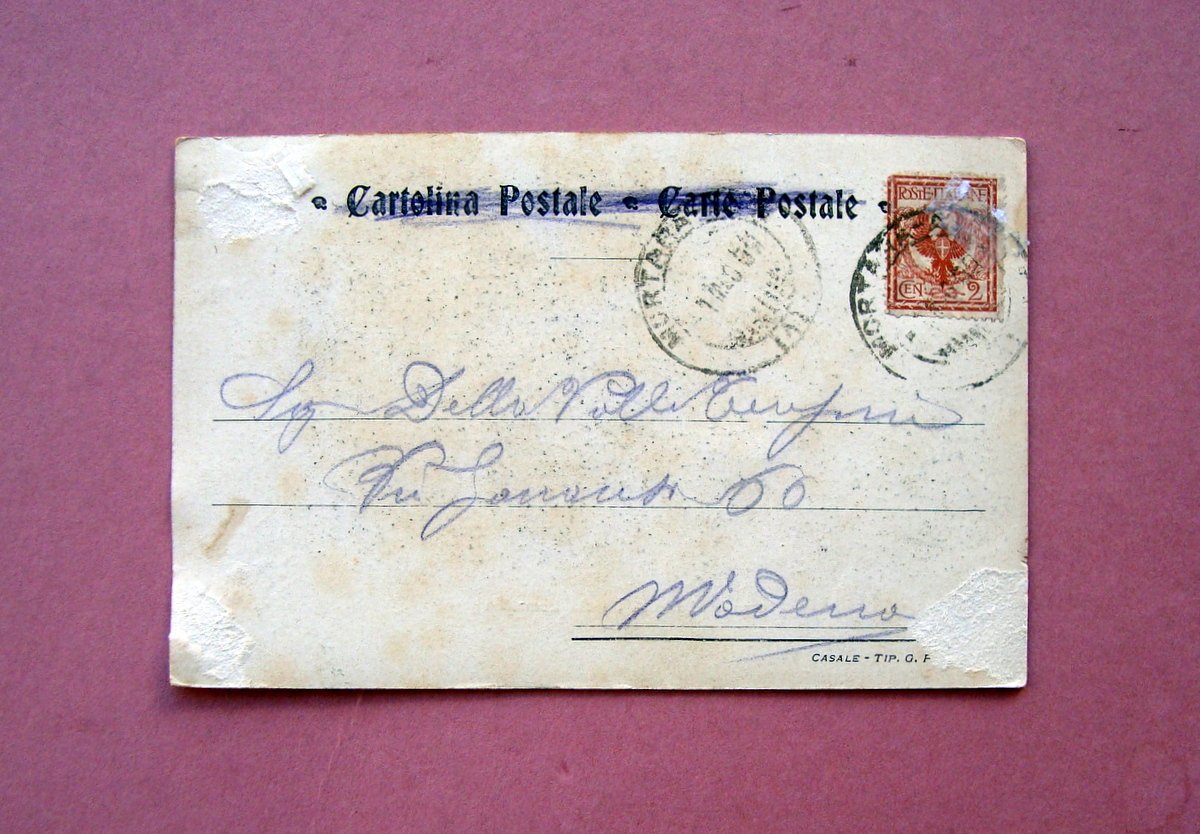 Casale; 1905 (?); cm 9x14; bella cartolina in cartoncino azzurro, illustrata b/n; animata, viaggiata.