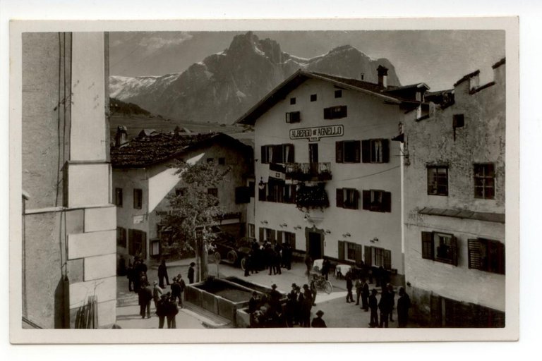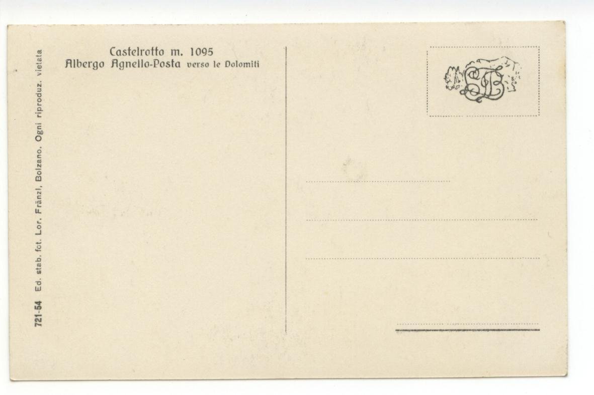 Fotocartolina originale, Castelrotto m. 1095 Albergo Agnello-Posta verso le Dolomiti S. d. (anni venti); cm 14x9; figurata; non viaggiata. Condizioni di conservazione Cartolina molto ben conservata (vedi foto). CART.1169G
