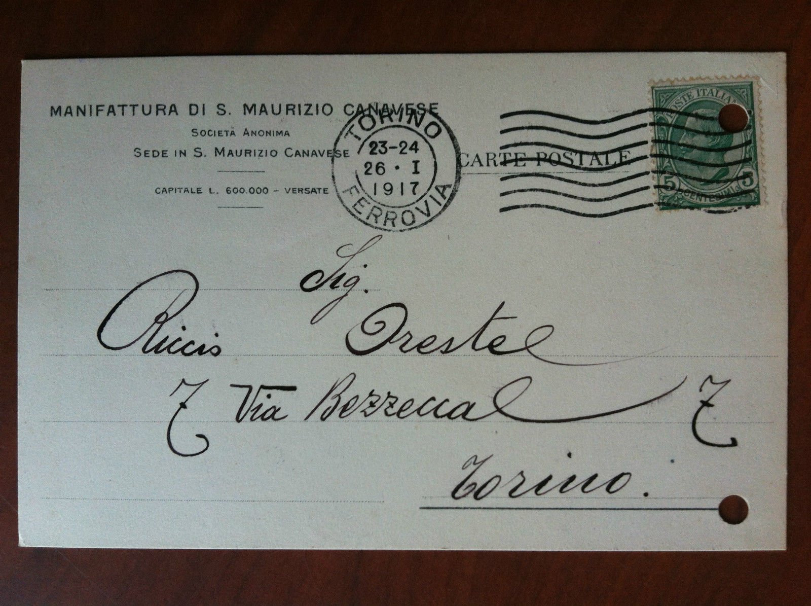Cartolina commerciale originale Manifattura di S. Maurizio Canavese 1917- E19390 | Libri antichi e moderni | ,