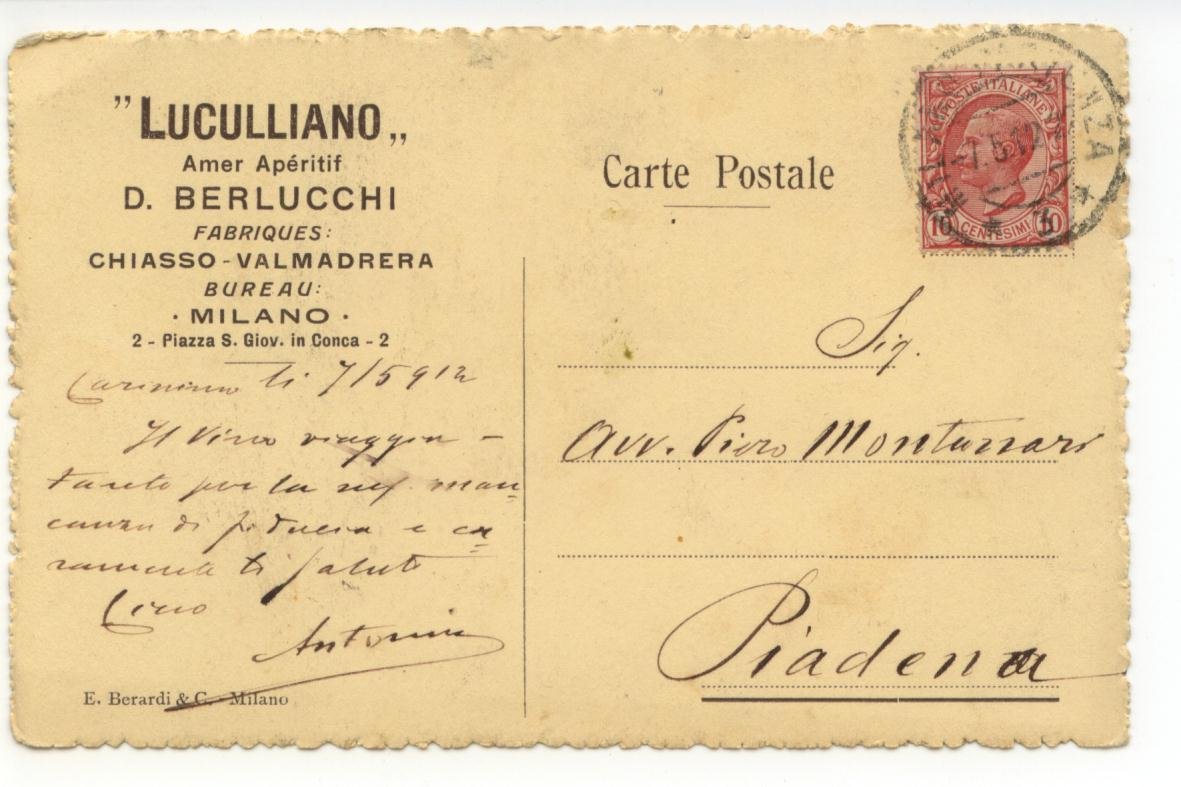 Cartolina Luculliano Amer ApÈritif Berlucchi Chiasso Valmadrera 1912 viaggiata | Libri antichi e moderni |