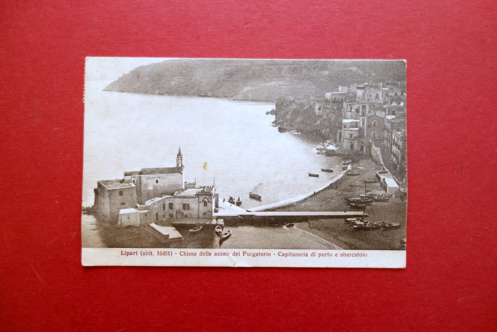 Cartolina originale, Lipari Chiesa delle Anime del Purgatorio - Capitaneria di porto e sbarcatoio Cart. e Tip. F. Amendola, Lipari 1932; cartolina originale ill. in b/n; viaggiata, con timbro di convalida della Direzione Colonia Confinati Politici (vedi foto). Cm 9x14. Condizioni di conservazione Esemplare in buono stato con trascurabili difetti agli angoli, margine inf. con un minuscolo taglietto; lieve poco visibile accenno di piega alla parte inf.; qualche minima brunitura in prevalenza al retro. Per maggiori dettagli vedi foto. CART.2788 N