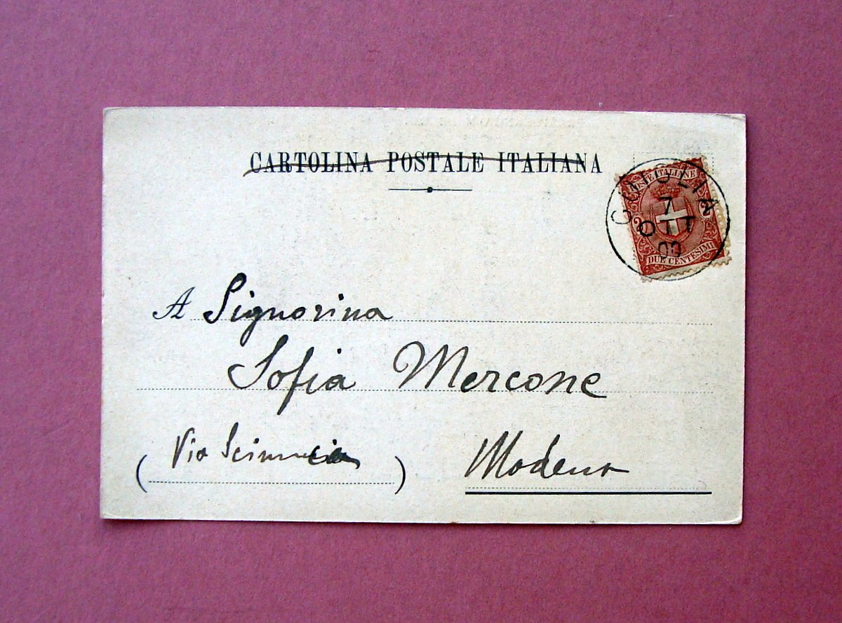 Guiglia, 1900; cm 9x14; cartolina ill. b/n. Viaggiata.