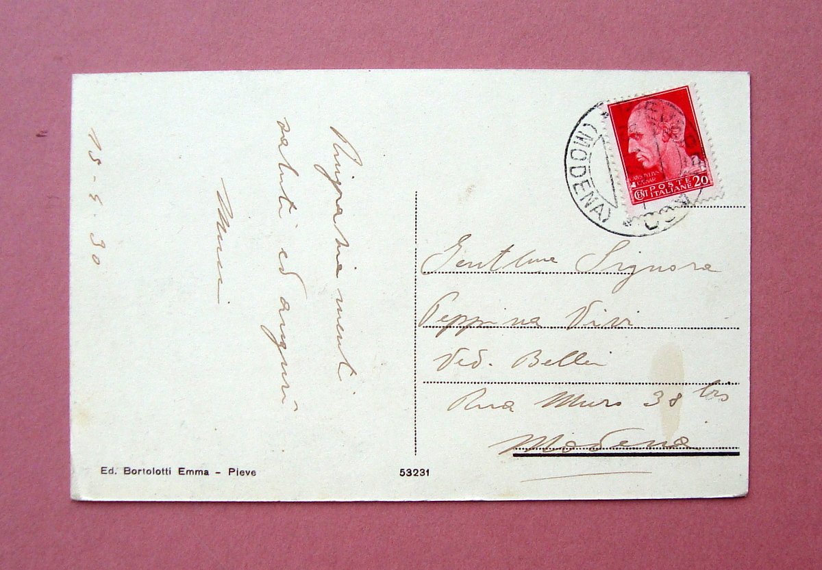 Cartolina Pievepelago Via Cesare Costa Animata 1930 viaggiata | Libri antichi e moderni |