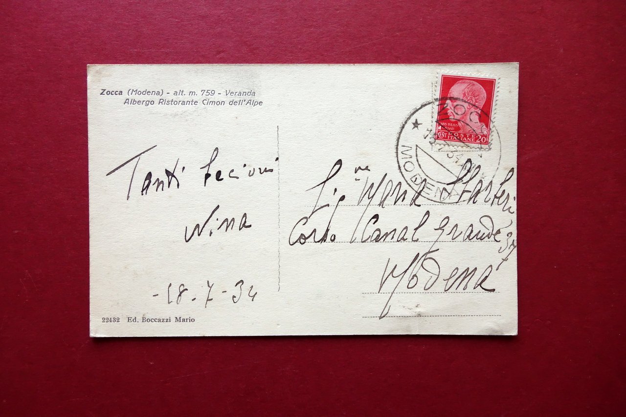Cartolina Zocca Veranda Albergo Cimon dell'Alpe Animata Viaggiata 1934 Modena | Libri antichi e moderni |