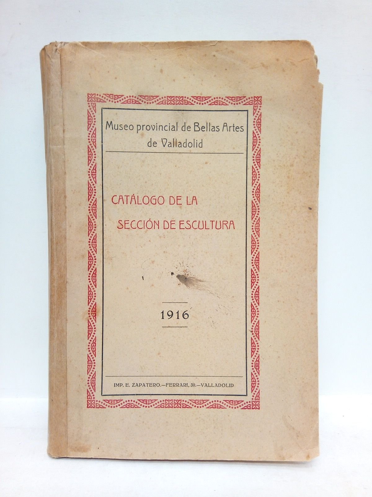 Valladolid: Junta del Patronato, 1916.- 101 p. + 80 h. de láminas en papel couché; 4º menor (21,4 x 14,2 cm); Cartulina Ed.* La portada y las hojas correspondientes al texto están algo moteadas de óxido, no así las láminas, que se encuentran en magnífico estado. Tiene el lomo reforzado y una pequeña falta en la esquina superior externa de la cubierta anterior. ESCULTURA ESPAÑOLA