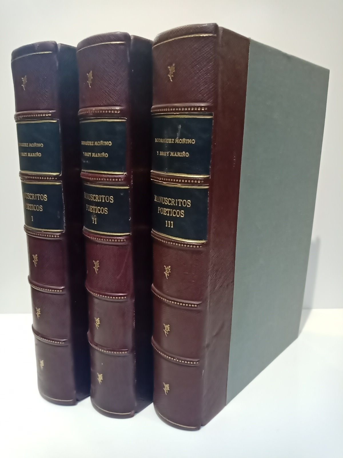 New York [pero imp. en Valencia, Artes Graf. Soler]: The Hispanic Society of America, 1965-66.- 3 Vols. (IX,632; 608; 620 pp.): Láminas facsímiles; 4º mayor (27,5 x 18,7 cm.); Media Piel de Rusia en color burdeos, lomo dorado, dos tejuelos.* En excelente estado de conservación. BIBLIOGRAFÍA Y DOCUMENTACIÓN ESPAÑOLAS
