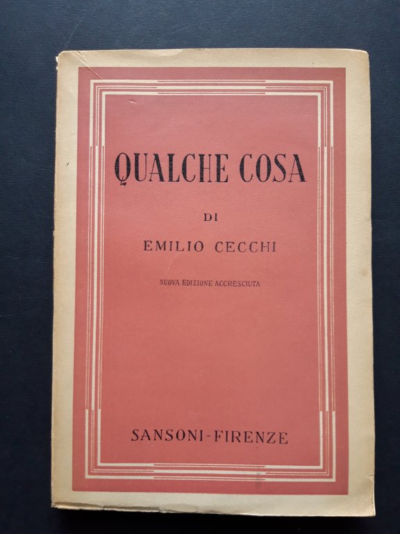 Cecchi Emilio. Qualche cosa. Sansoni. 1943 Nuova edizione accresciuta - In.8 - pp 204 - Brossura con alette - Molto buono - pagine intonse