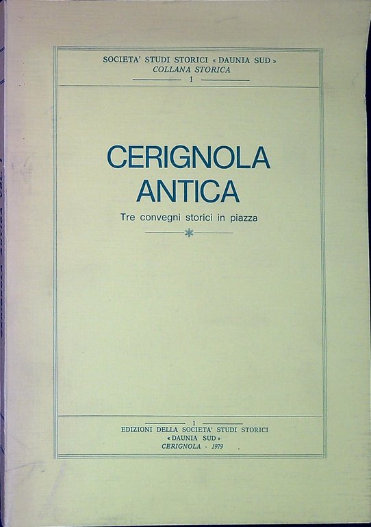 Cerignola Antica. Cerignola, Edizioni della società studi storici Daunia Sud 1979, 23 272 p. 272 p. 23 cm (56786)