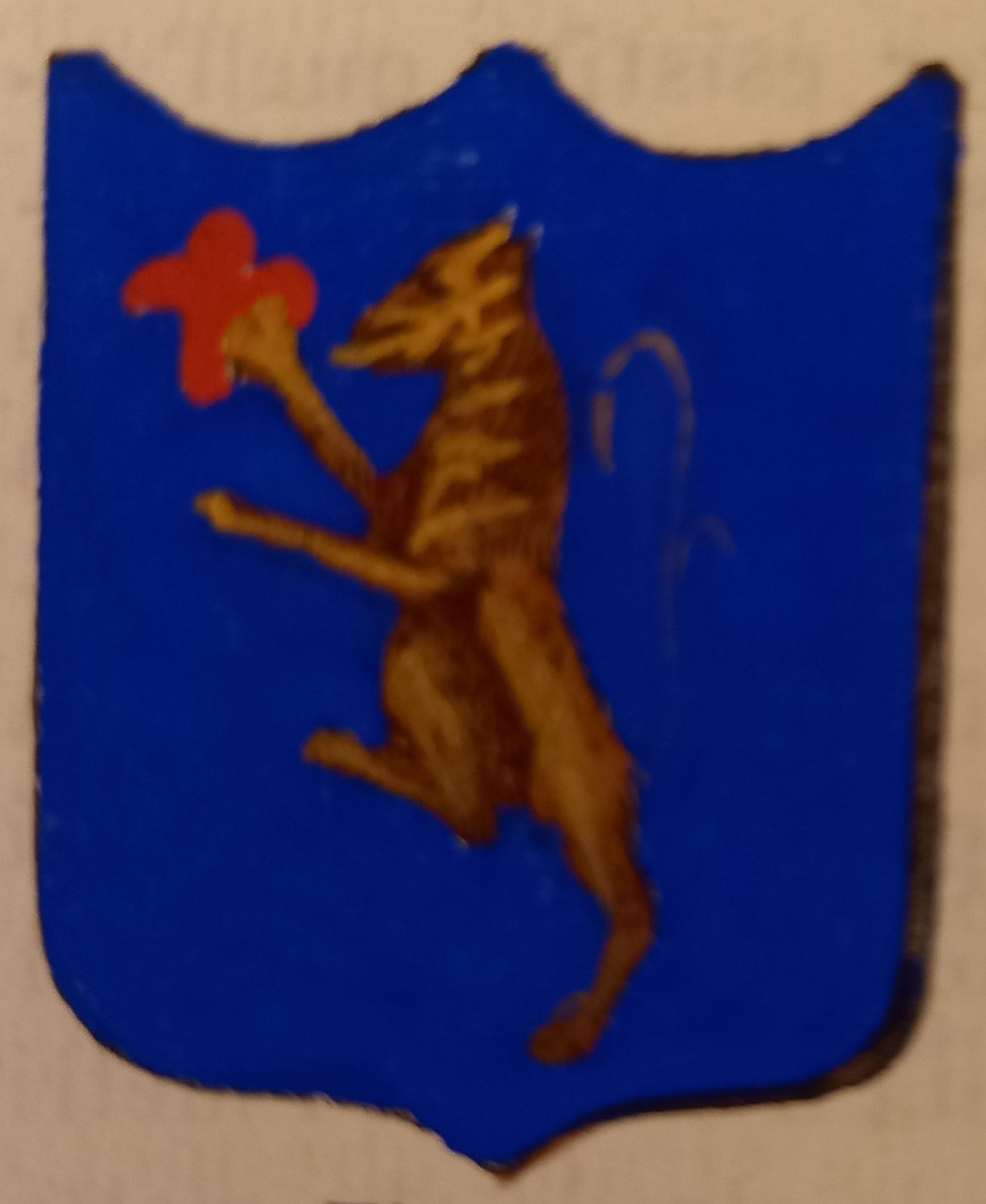 Piccolo stemma comunale colorato a mano d’epoca (cm. 3,8 x 3,2 ca.). Stralcio dal Dizionario Corografico illustrato dell’Italia, edito a Milano nel 1868. Ogni stemma di questa raccolta è inserito in una o più pagine di testo con la descrizione della località, notizie storico - geografiche e statistiche (numero degli abitanti e degli elettori, guarnigioni della Guardia Nazionale, ecc.). Spesso il testo è redatto da studiosi locali o dai sindaci, con maggiori, interessanti notizie.