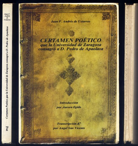 Certamen poético que la Universidad de Zaragoza consagró al Arzobispo Don Pedro de Apaolaza en 1642, según el Manuscrito E. 41-5.943 de la Biblioteca Rodríguez-Moñino/Brey. Introducción por Aurora Egido. Estudio codicológico, transcripción e índices por Ángel San Vicente.