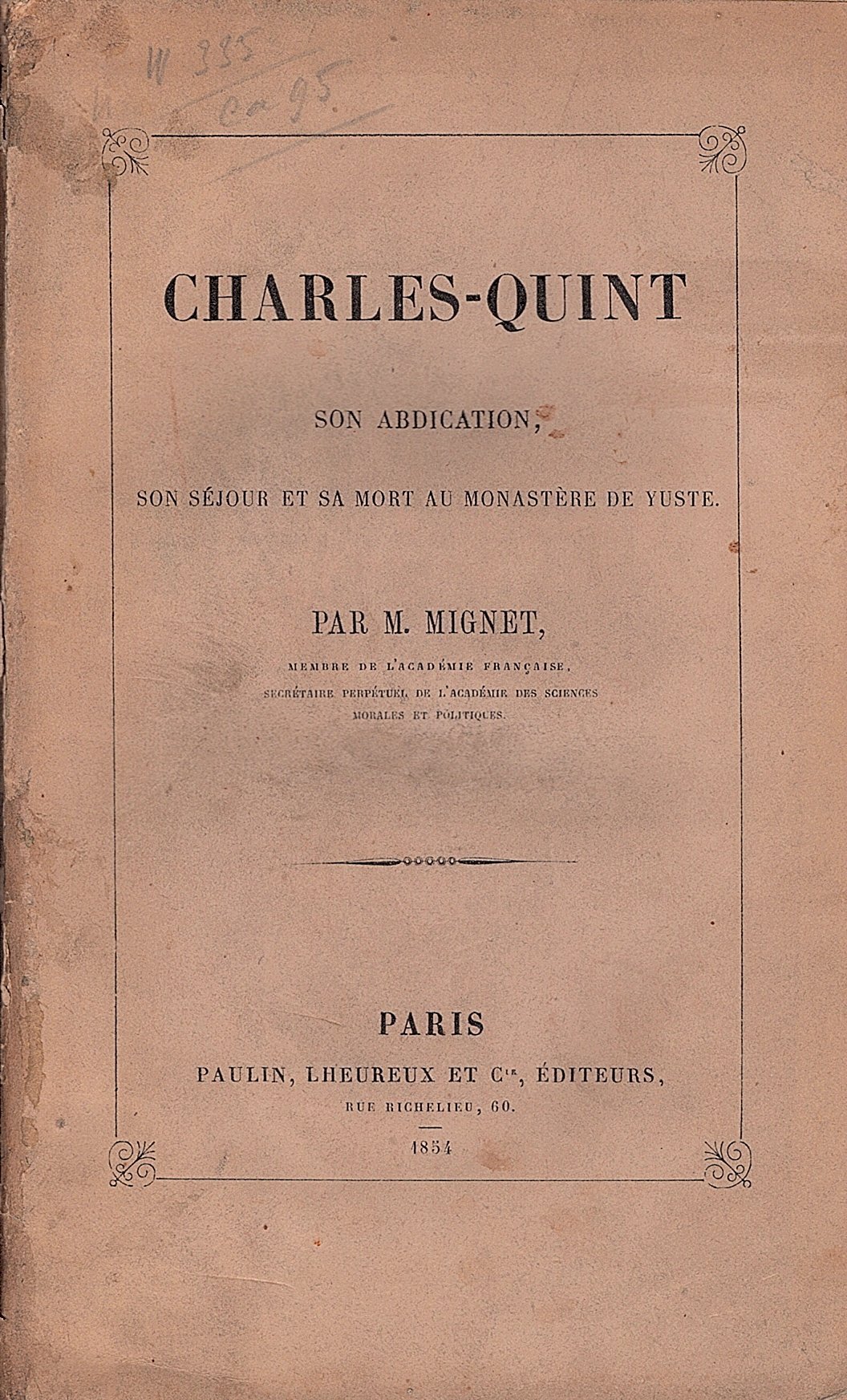 Charles-Quint son abdication, son séjour et sa mort au monastere de Yuste | Libri antichi e moderni | Mignet M.