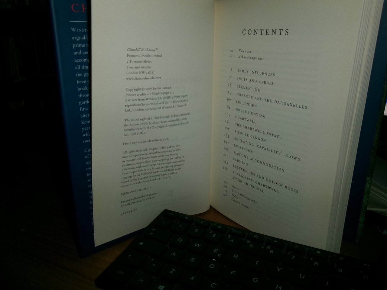 STEFAN BUCZACKI. Printed and bound in Singapore, 2007. CHURCHILL & CHARTWELL. The Untold Story of Churchill's Houses and Gardens. In-8°, tela edit. bleu con titolo in oro al dorso, sovracopertina ill. a col. xii, 324 pp. con numerose illustrazioni a colori in tavole f.t. Ottimo stato con testo in inglese. Uff. C - II - 7