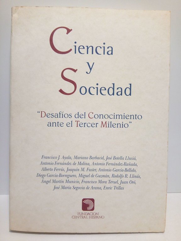 Ciencia y Sociedad: "Desafíos del Conocimiento ante el Tercer Milenio". (Ciclo de conferencias organizado por la Fundación Central Hispano en 1997) / Coordinadores.; COLABORAN: Juan Oró: Origen y evolución de la vida (Del hidrógeno al hombre); Albero Ferrús: Genes y cerebro; Antonio García-Bellido: La evolución de las especies; Joaquín M. Fuster: La memoria; Francisco Mora Teruel: Cerebro y mente; Antonio Fernandez de Molina: Cerebro y sentimientos; Rodolfo R. Llinas: La percepción como un estado seudo-onírico modulado por los sentidos; Mariano Barbacid: La cirugía genética. Nuevas fronteras en la investigación básica y en la generación de modelos para el estudio de enfermedades humanas; Enric Trillas: La inteligencia artificial y la razón