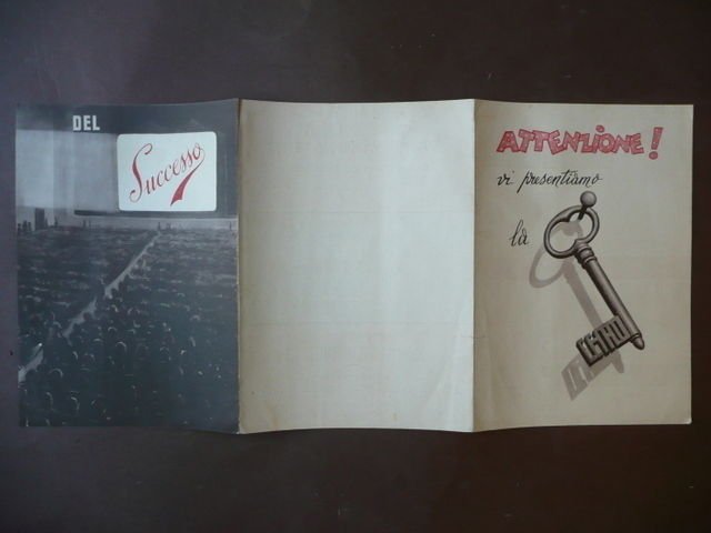 Vedere la descrizione dettagliata Brossura Pieghevole Attenzione vi presentiamo la (disegnata) chiave del successo" Alterocca, Terni, s.d. (fine anni '40), pieghevole cm. 24,5x53 a colori. Condizioni di conservazione Esemplare in buono stato, strappetto al dorso,minime traccie d'uso. Ceiad Columbus Pictures "M.R. Smith va a Washington" F. Capra; "Gilda" R. Hayworth, G. Ford, Regia C. Vidor; "Angeli Neri" R. Hayworth. Bella grafica. Per altri volumi e documenti su questo e altri argomenti visitate il nostro negozio "Libreria Grandangolo" CONDIZIONI DI VENDITA Spedizione Fino a 5 kg piego di libri raccomandato, oltre i 5 kg pacco postale. Si ricorda che l'imballo viene eseguito con la massima cura. La merce viene spedita a pagamento avvenuto e viaggia a rischio e pericolo dell'acquirente. Per maggiori informazioni vedi la pagina SPEDIZIONI del nostro negozio. Ritiro diretto Siamo disponibili per il ritiro diretto a Modena e a Milano. Per gli indirizzi delle sedi vedi la pagina DOVE SIAMO del nostro negozio. Acquisti multipli Se si acquistano più libri, la spedizione si paga una sola volta, purché si rispettino gli scaglioni di peso. Estero / Foreign For international shipment, please contact us. Metodo di pagamento Pay Pal, bonifico bancario, versamento postale (cc/p, vaglia o altro). La spedizione avverrà entro i primi 4 giorni lavorativi dopo la conferma di avvenuto pagamento. Si emette ricevuta fiscale e a richiesta fattura. Il pagamento deve essere effettuato entro 7 giorni lavorativi dalla data di acquisto, trascorsi i quali l'oggetto sarà rimesso in vendita. Feedback Viene rilasciato dall'acquirente dopo il ricevimento di quanto acquistato. Data la sua importanza, vi invitiamo a leggere il breve testo della pagina FEEDBACK del nostro negozio. Pertanto, in caso di qualsiasi problema, non esitate a contattarci. Diritto di recesso L'acquirente ha il diritto di restituire l'oggetto entro 14 giorni ed essere rimborsato, escluse le spese di porto e imballo. L'oggetto deve essere restituito, dopo previa comunicazione, imballato e nelle medesime condizioni di come era all'origine. Creato da Turbo Lister Strumento gratuito per mettere in vendita i tuoi oggetti. Metti in vendita i tuoi oggetti in modo facile e veloce e gestisci le inserzioni in corso. "