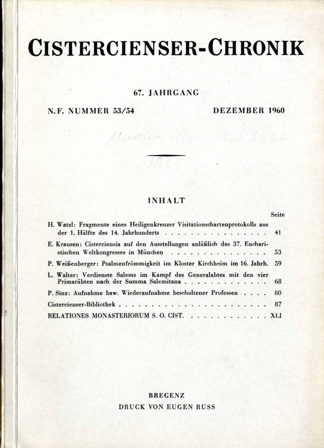 CISTERCIENSER-CHRONIK n.53/54 del 1960 | Libri antichi e moderni |