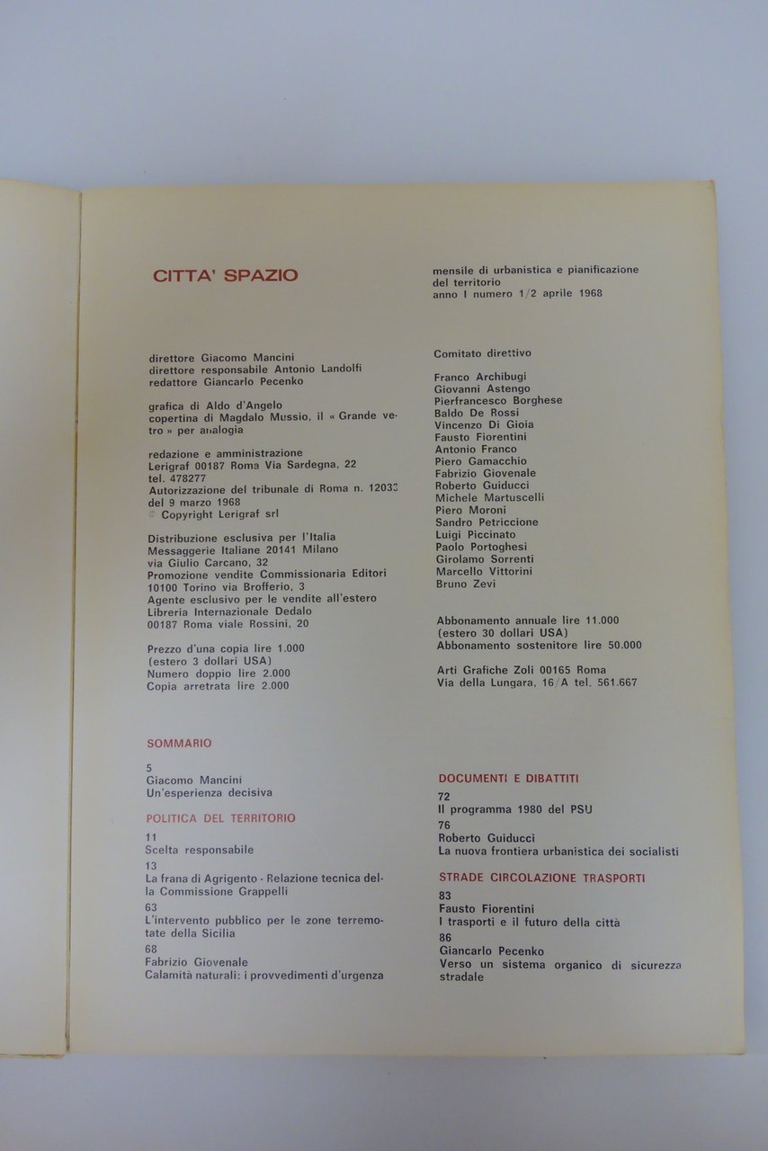 Città Spazio 1968 Mancini Giovenale ecc. Lerici Ed. Urbanistica Frana Agrigento | Libri antichi e moderni |