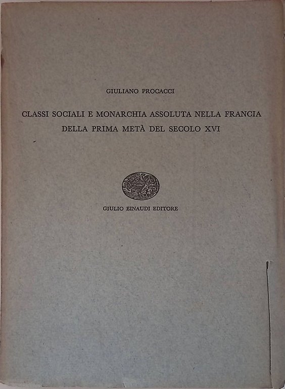 Classi sociali e monarchia assoluta nella Francia della prima metà del secolo XVI | Libri antichi e moderni | Procacci Giuliano