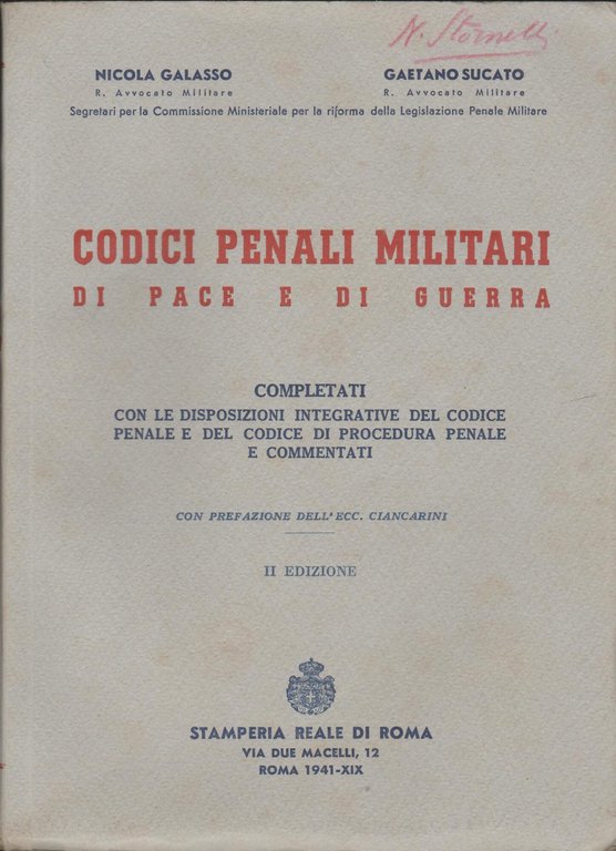 Codici Penali Militari di pace e di guerra | Libri antichi e moderni | Nicola Galasso; Gaetano Sucato, ,Nicola Galasso; Gaetano Sucato