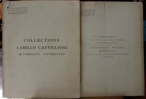Collections Camillo Castiglioni de Vienne. III Tableaux - Antiquités (Unito con) Supplément. Tapisseries - étoffes - meubles, etc. provenant e. a. de la Légation des Pays-Bas à Vienne