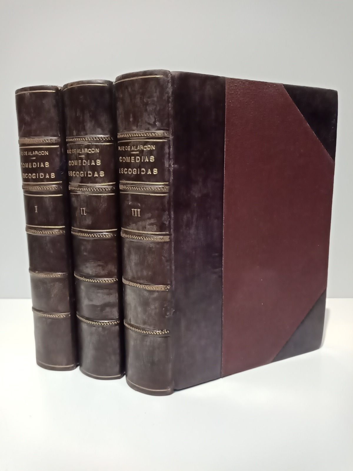 Edición de la Real Academia Española.- Madrid: R. A. Española (Imp. Nacional), 1867.- 3 VOLS. (XXXIV,460, [1 h.]; 520, [1 h.]; 509 p., [3 h.]); 8º; Excelente papel ahuesado; Media Piel puntas de fina ejecución.- (Bibl. Selecta de Autores Clásicos Españoles. Nos. 4, 5, 6).* En excelente estado de conservación. TEATRO ESPAÑOL DESDE SUS ORÍGENES HASTA EL SIGLO XVIII