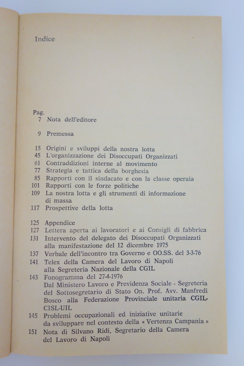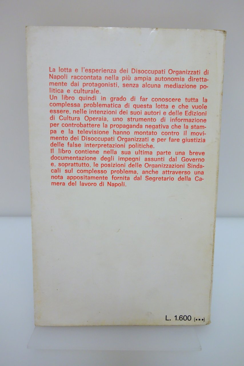 COMITATO DISOCCUPATI ORGANIZZATI NAPOLI O' LAVORO EDIZIONI CULTURA OPERAIA 1976