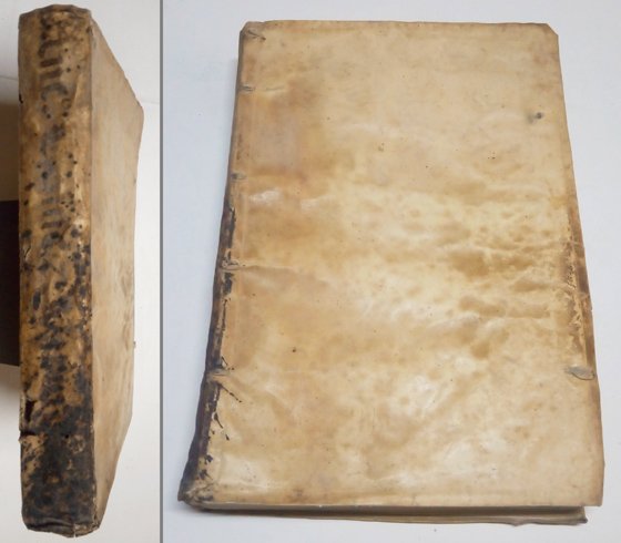 Lyon: Lugduni, sumptibus Horatii Cardon, 1602. Folio; 4 hojas, 528 pp., 7 hojas. Apostillas manuscritas de la época en el margen blanco. Impresión a doble columna. Encuadernación en pergamino, de la época.