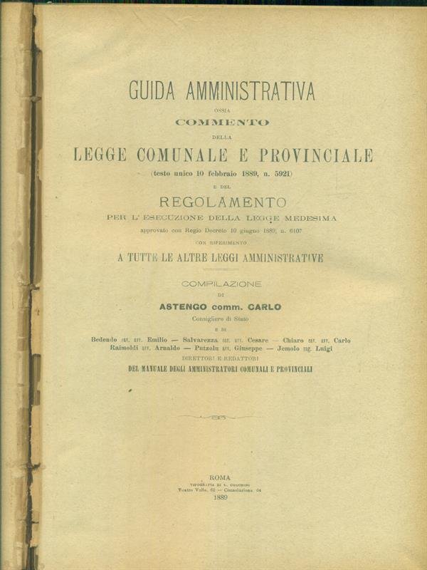 Commento della legge comunale e provinciale 16 febbraio 1889 n. 5921 | Libri antichi e moderni | Astengo, Carlo