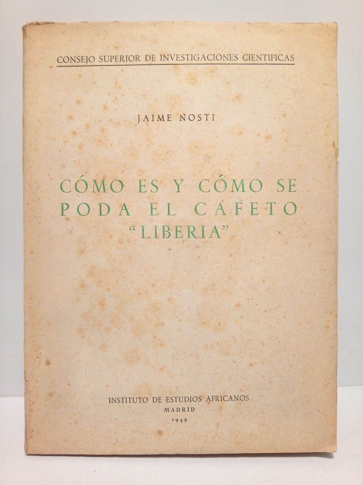Cómo es y como se poda el cafeto "Liberia" : Lecciones del cursillo teórico-práctico de poda del cafeto "liberia" celebrado en Marzo de 1944 en la Granja de Santa Isabel [Guinéa Española, Hoy Guinéa Ecuatorial] | Libri antichi e moderni | Nosti, Jaime