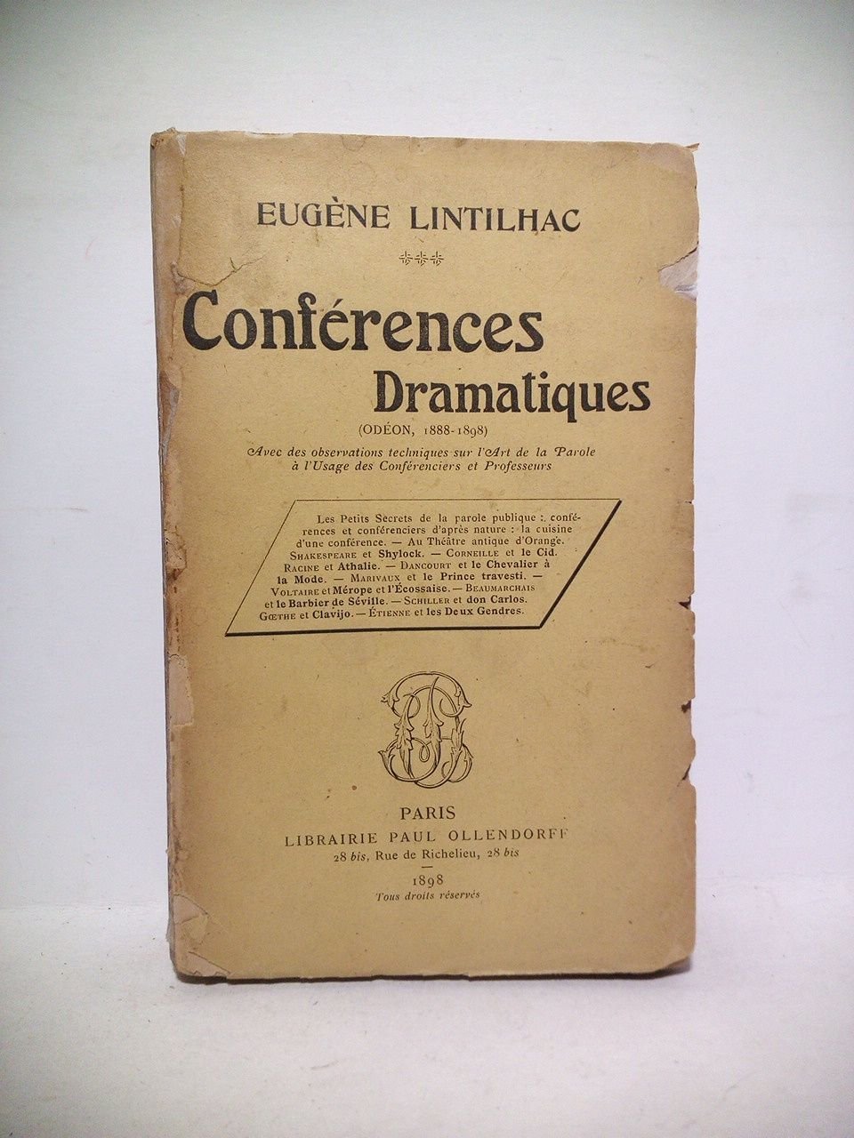 Conférences dramatiques (Odéon, 1888 - 1898). Avec des Observations techniques sur l'Art de la Parole a l'usage des conférenciers et profeseurs | Libri antichi e moderni | Lintilhac, Eugène