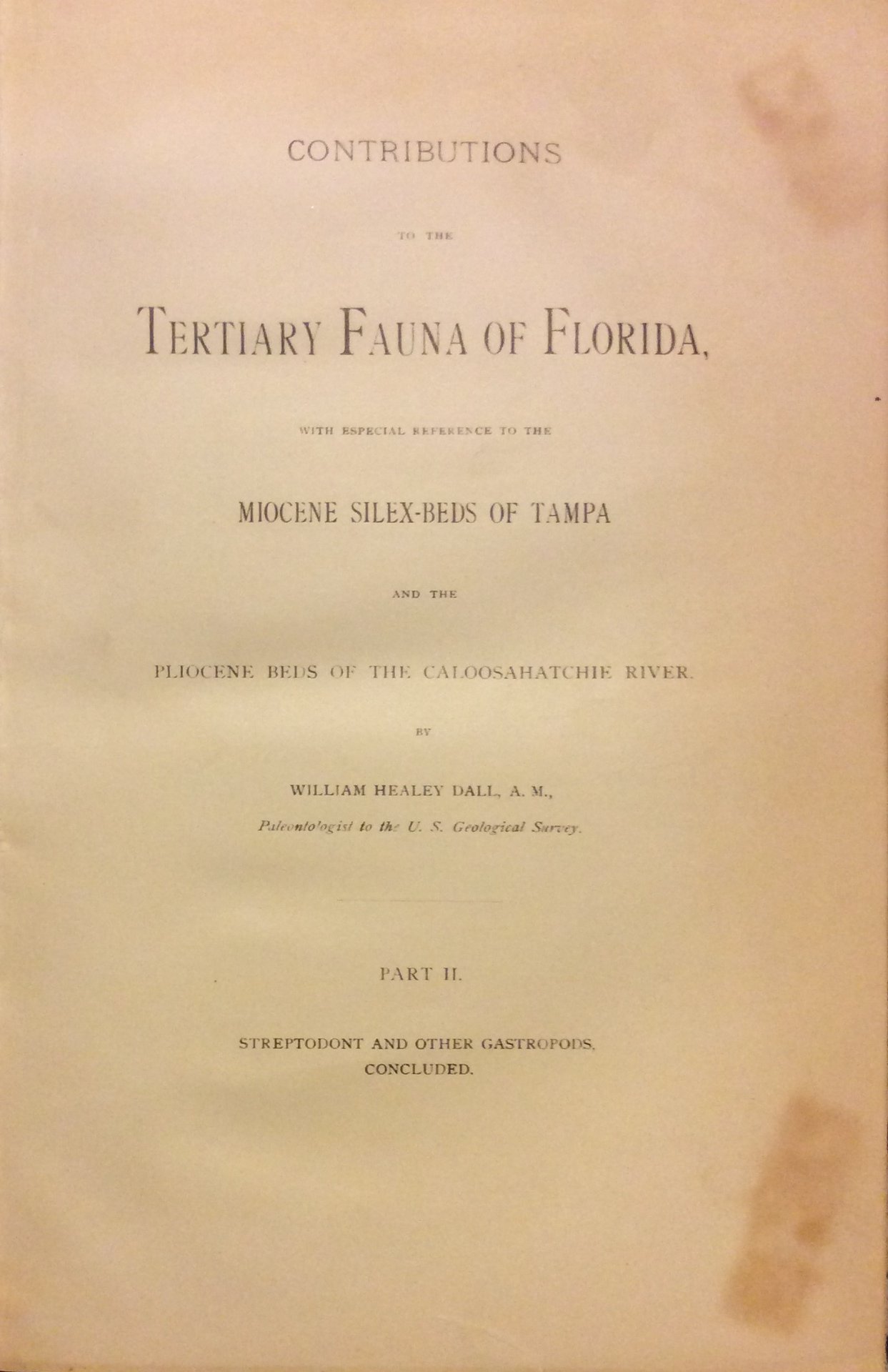 CONTRIBUTIONS TO THE TERTIARY FAUNA OF FLORIDA WITH SPECIAL REFERENCE TO THE MIOCENE SILX-BEDS OF TAMPA. - Part II: Steptodont and otherr gasteropods. | Libri antichi e moderni | DALL William Healey