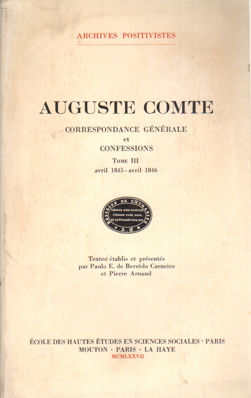 Correspondance générale et confessions tome III (avril 1845 - avril 1846) | Libri antichi e moderni | Auguste Comte