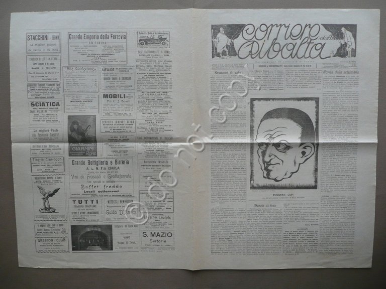 Settimanale, Corriere della Ribalta" Settimanale di Critica e di Teatro Anno I - N.5 Roma, 29 Aprile 1923 Roma 1923, cm 44x32, pp. 4 (bifolio) con alcune ill. in b/n nel testo. Numero completo. Condizioni di conservazione Esemplare in buone condizioni con tracce d'uso, piega centrale di conservazione, minime trascurabili bruniture, un margine con lievissima traccia di piega. SC03.D9146 N F "