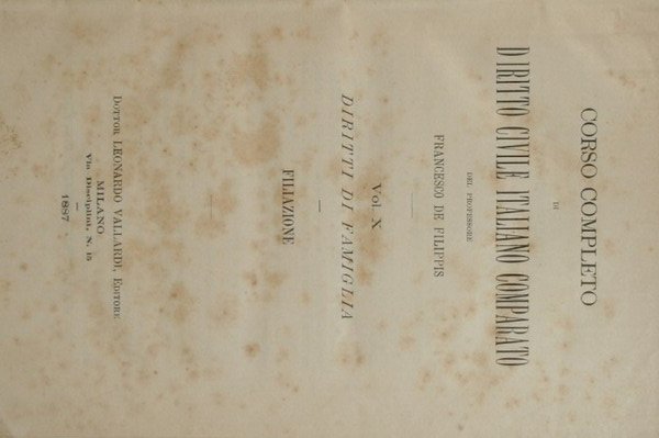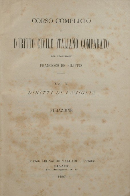 I diritti di famiglia. Filiazione - in 8° - pp.446 - Tela con titolo in oro al dorso - Dorso scolorito, rare fioriture in poche pagine - lievi abrasioni alla tela