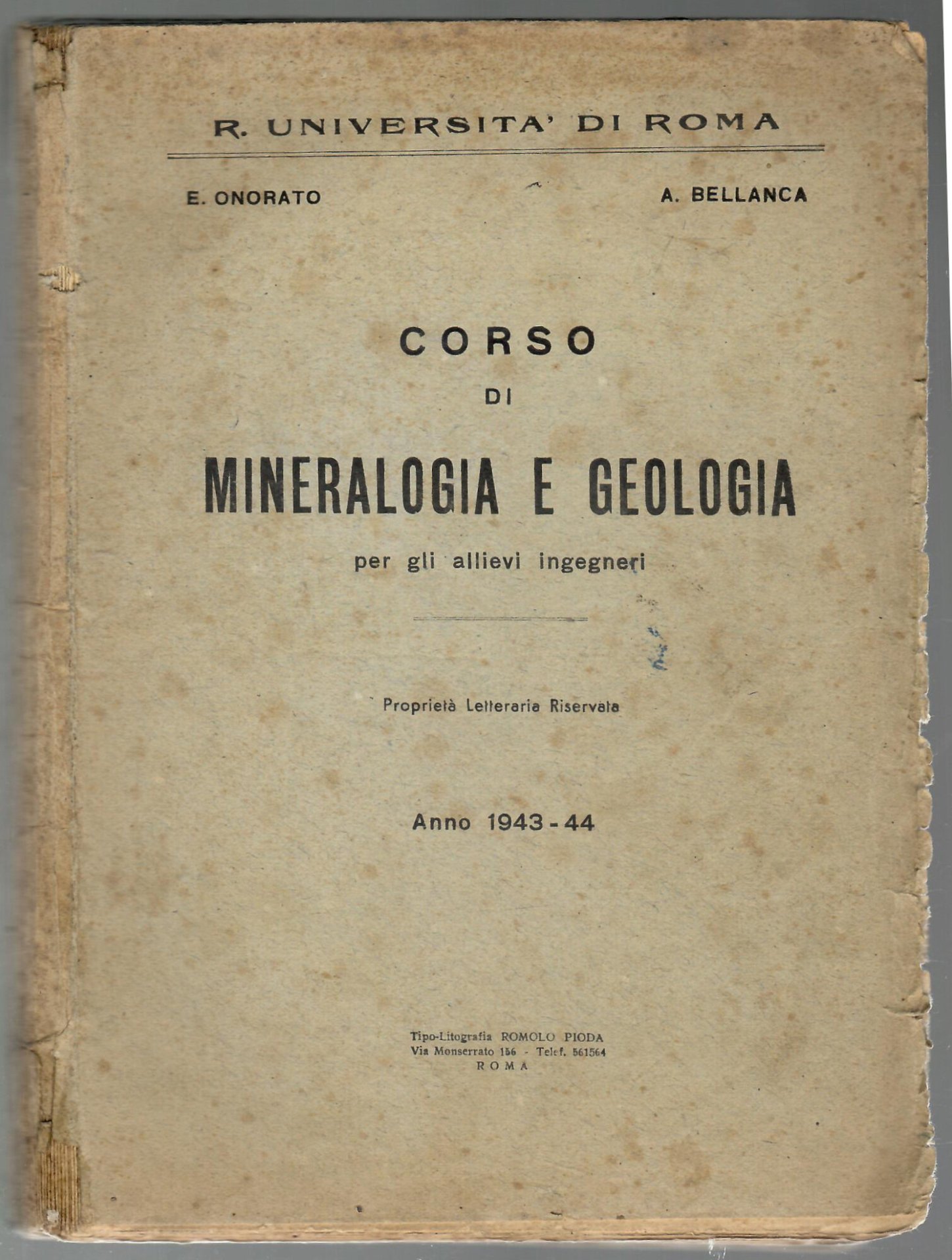 Corso di mineralogia e geologia per allievi ingegneri- Anno 1943-44 | Libri antichi e moderni | Onorato, E. - Bellanca, A.
