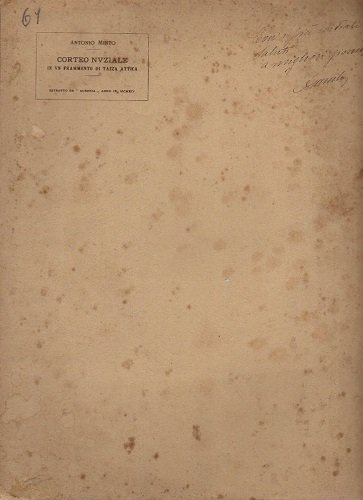 Corteo nunziale in un frammento di tazza attica - Estratto da AUSONIA anno IX - 1914 | Libri antichi e moderni | Minto A