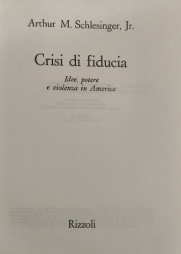 Crisi di fiducia. Idee, potere e violenza in America. | Libri antichi e moderni | Schlesinger,Arthur M. Jr.