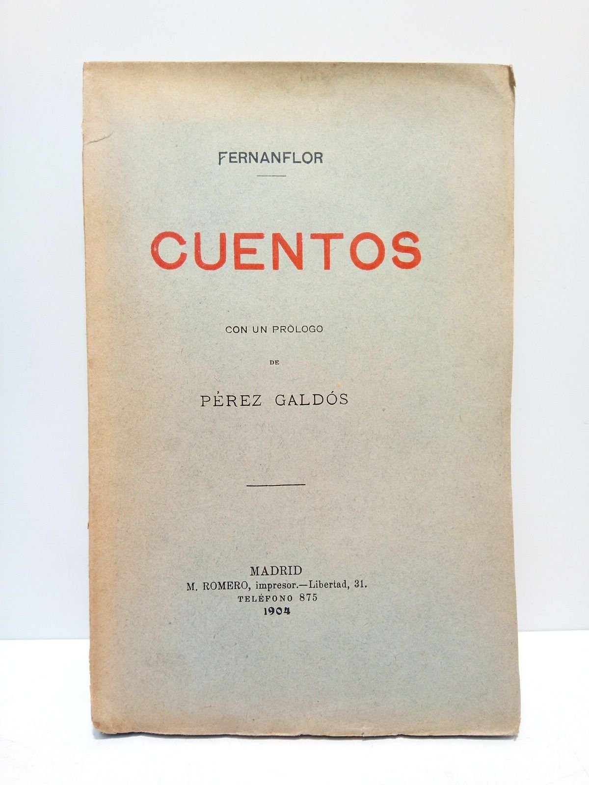 [PRIMERA EDICION en libro].- Madrid: [Edita "El Liberal"] M. Romero, imp., 1904.- XIII p., [1 h. en blanco], 225 p., [1 h.]; 8º mayor (20 x 12,7 cm); Intonso, conservando todas sus barbas; Rústica Ed.- (Obras de Fernanflor. Tomo 2).- Van en este libro reunidos por vez primera una serie de cuentos que el autor había publicado en el periódico "El Liberal", del que fue Director. RARO.* Las cubiertas con normales señales del tiempo. Por lo demás perfecto. LITERATURA Y FILOSOFÍA ESPAÑOLAS DE LOS SIGLOS XIX-XXI Y SU HISTORIA EN GENERAL