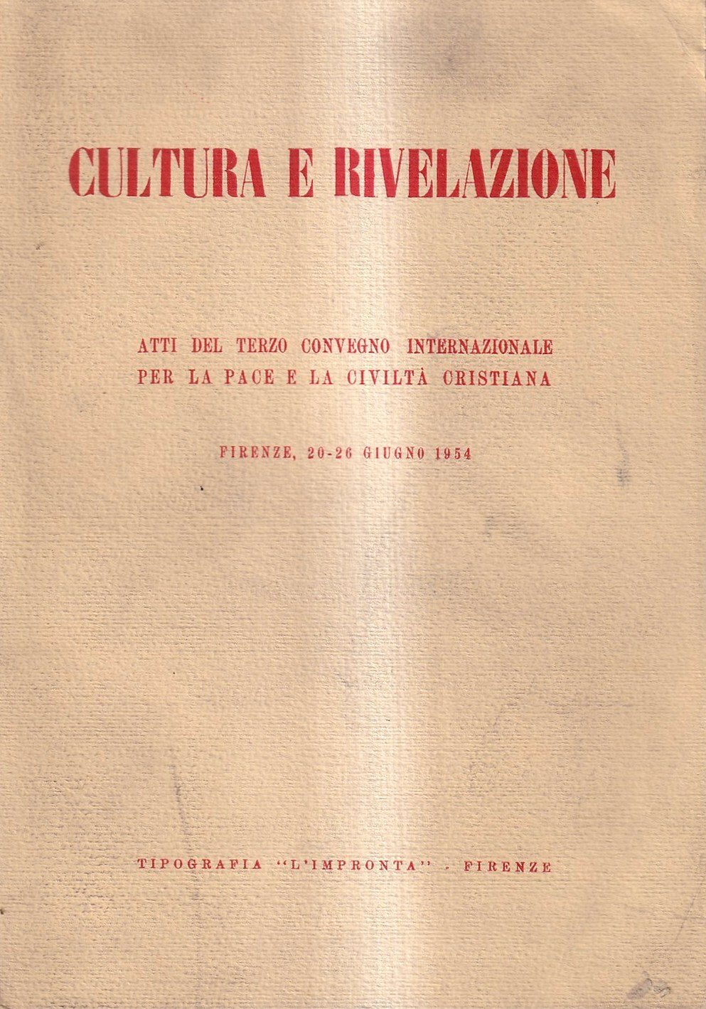 Cultura e rivelazione. Atti del terzo Convegno internazionale per la pace e la civiltà cristiana. Firenze, 20-26 giugno 1954