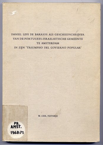Daniel Levi de Barrios [Miguel de Barrios,1635-1701] als geschiedschrijver van de Portugees - Israelietische Gemeente te Amsterdam in zijn "Triumpho del Govierno Popular" [1683]. Academisch Proefschrift ter verkkrijging van de graad van doctor in de letteren aan de Universiteit van Amsterdam.