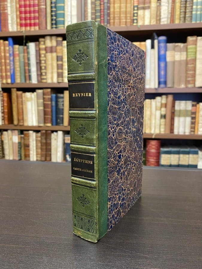 In-8° (cm. 19,9), bella legatura coeva<span style="font-size: 10pt;"> in mezza pelle verde, dorso a nervi con titolo in oro su doppio tassello nero, filetti ed eleganti fregi in nero, tagli spruzzati in blu; pp. IX [1b] 520 in ottimo stato (lievi e sporadiche fioriture). Il naturalista svizzero Louis Reynier fu un grande studioso di storia economica antica e moderna. Forte di queste qualifiche, accompagnò Napoleone nella sua spedizione in Egitto, dove prestò servizio come Alto Sovrintendente alle Entrate e alle Finanze. Ottimo esemplare. (NG4)</span>